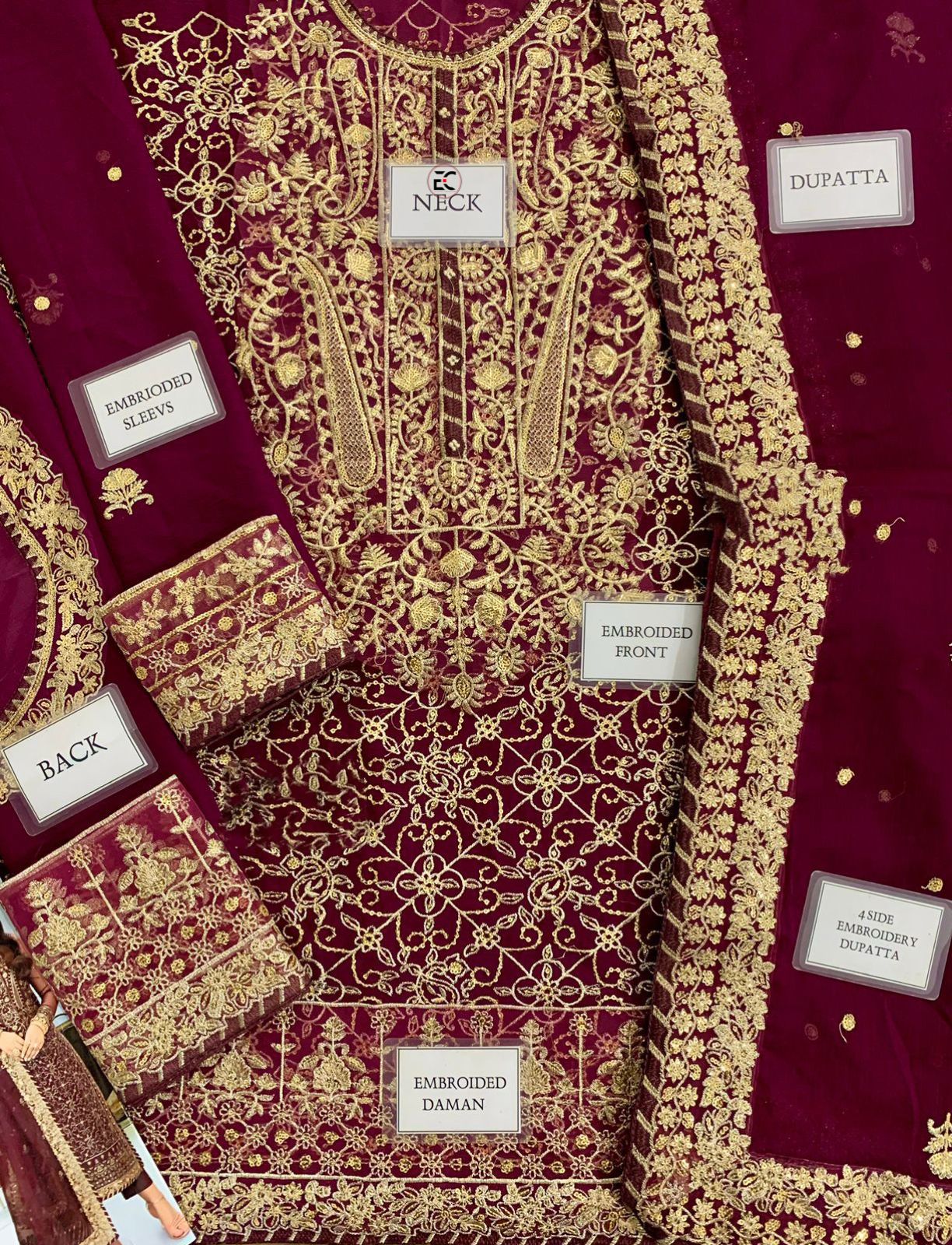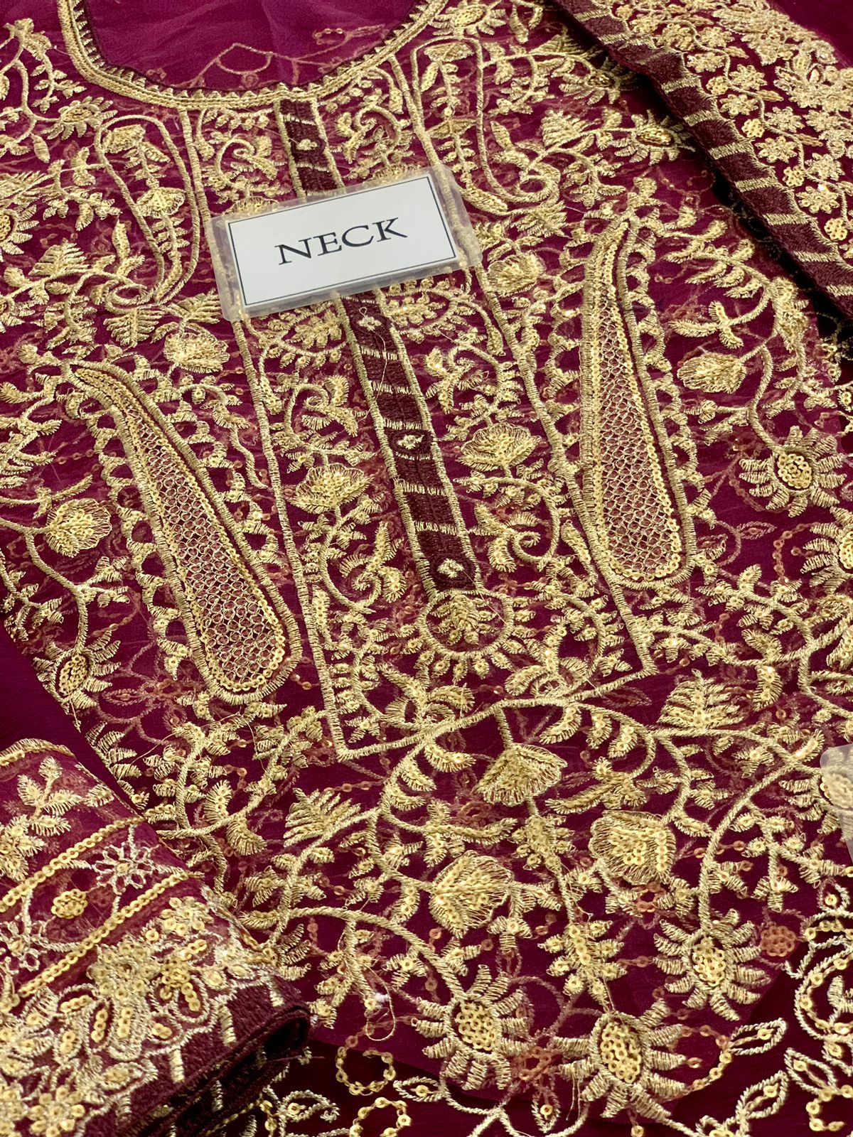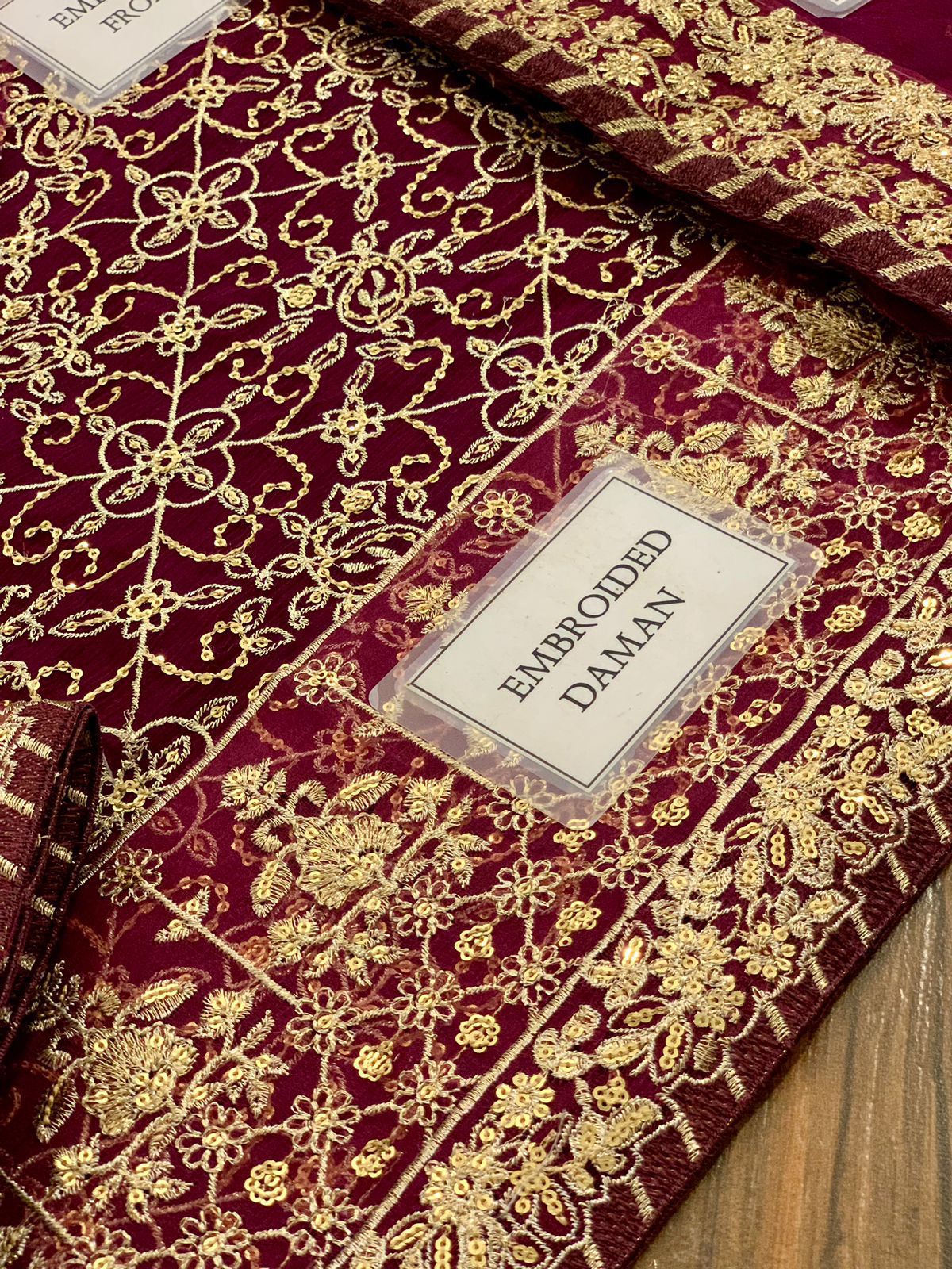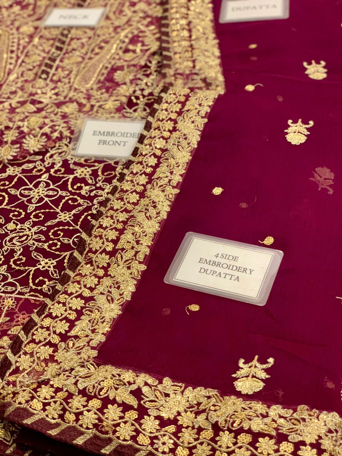 Embroidered Front With Spangle Work With Embroidered Neckline And Embroidered Daman Border