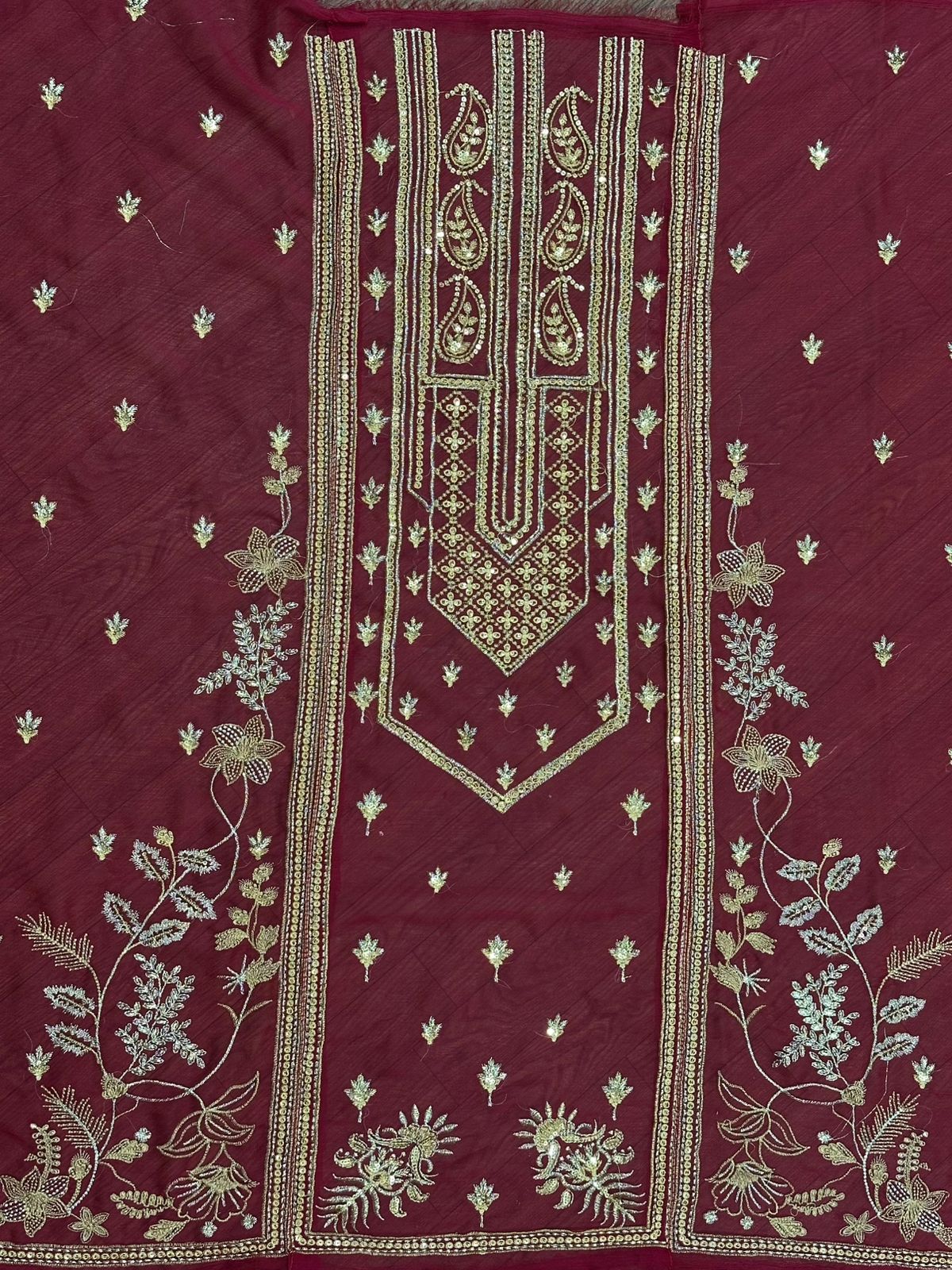 Embroidered Front With Sequence Work And Daman Border