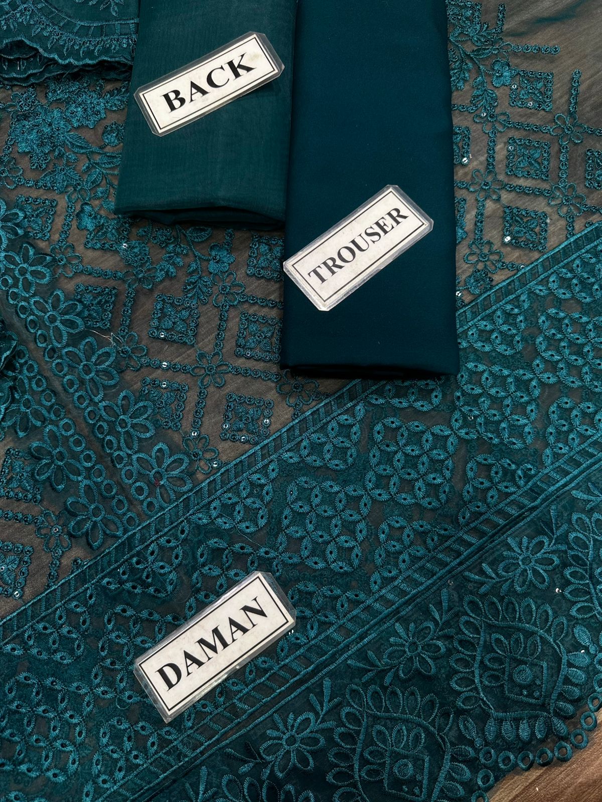 Fully Embroidered Organza Dupatta With 4 Side Embroidered Borders
