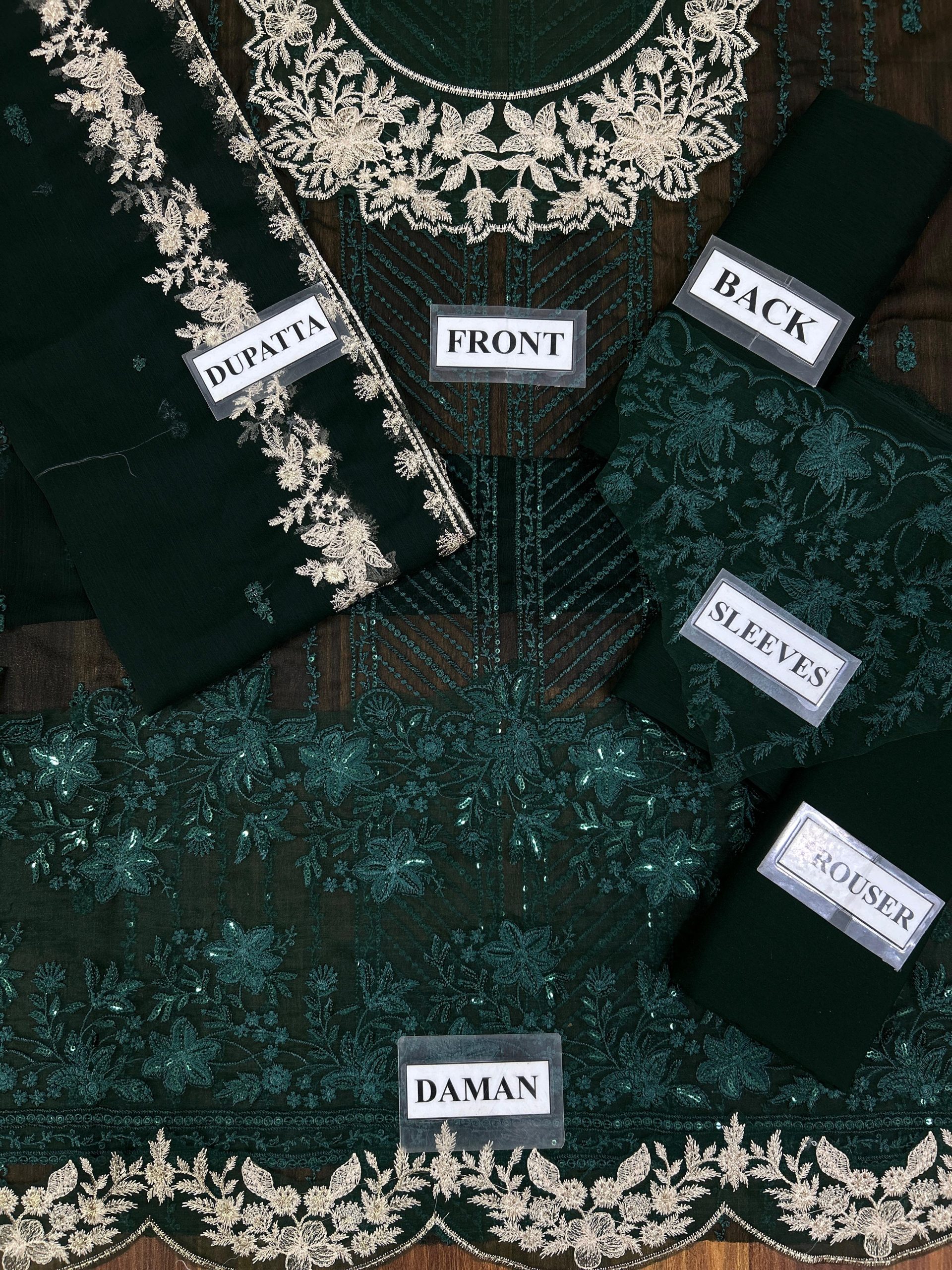 Fully Embroidered Chiffon Dupatta With 2 Side Embroidered Borders