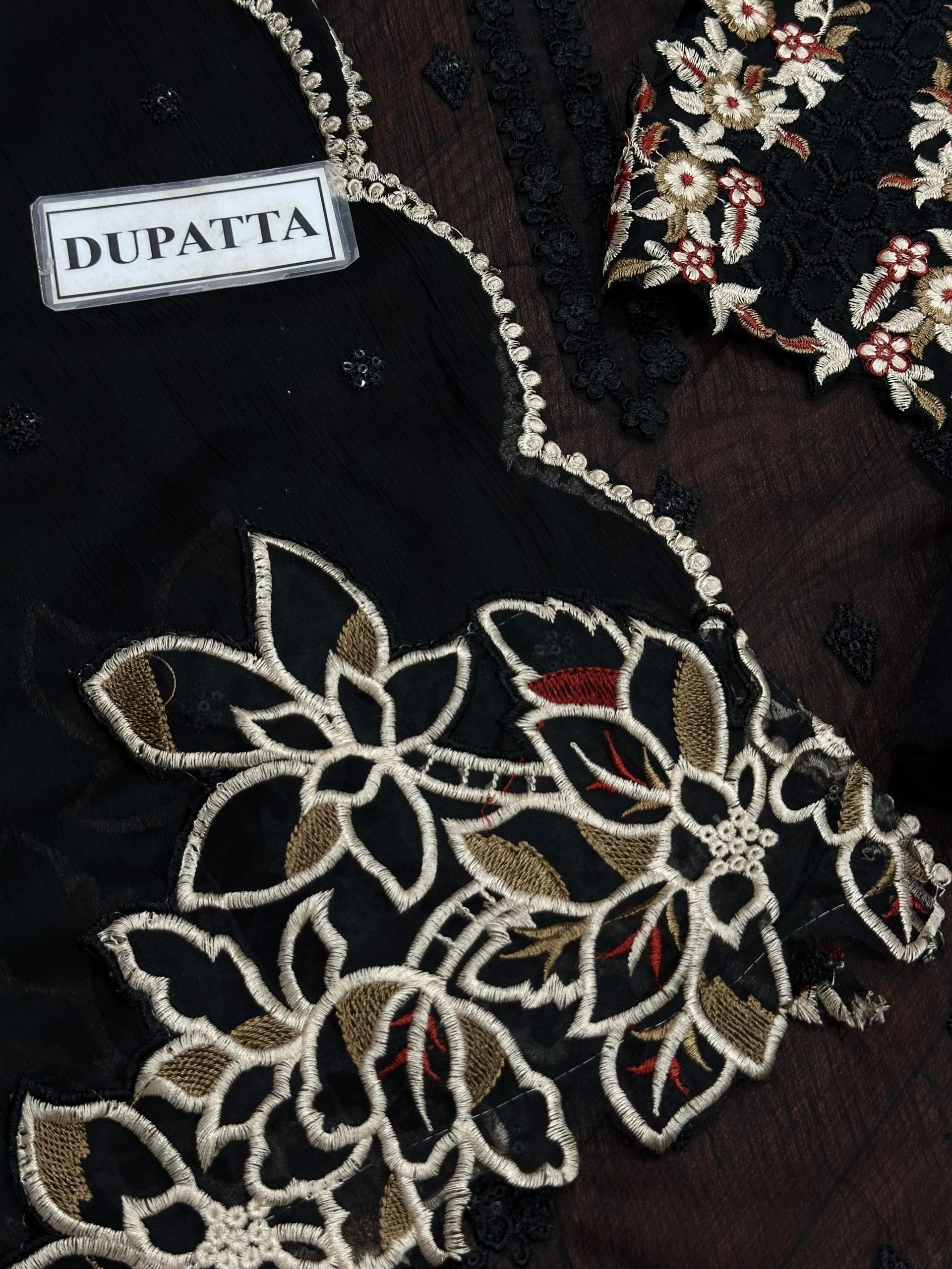 Fully Embroidered Chiffon Dupatta With 2 Side Embroidered Borders