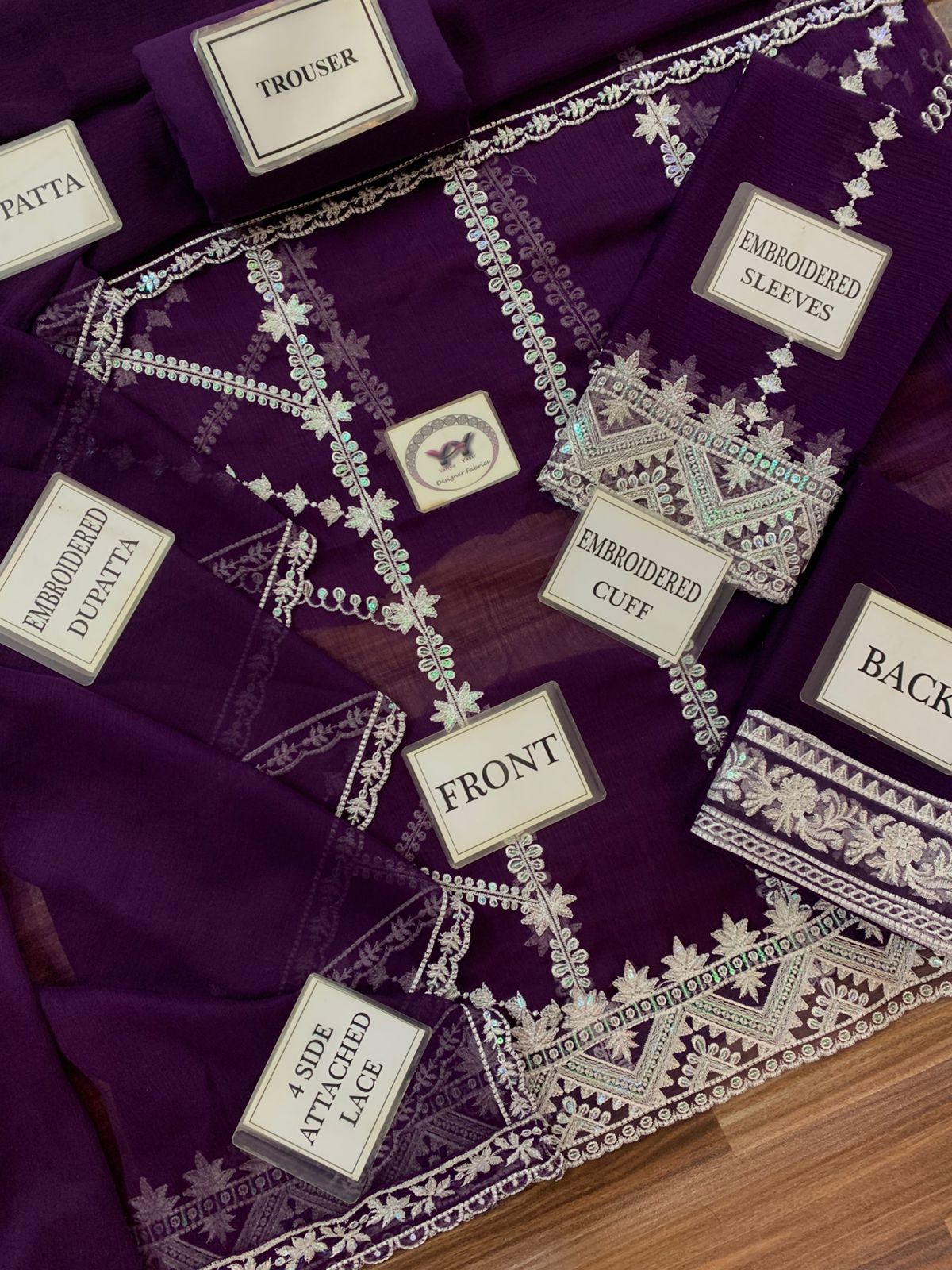 Embroidered Chiffon Dupatta With 4 Side Attached Patti