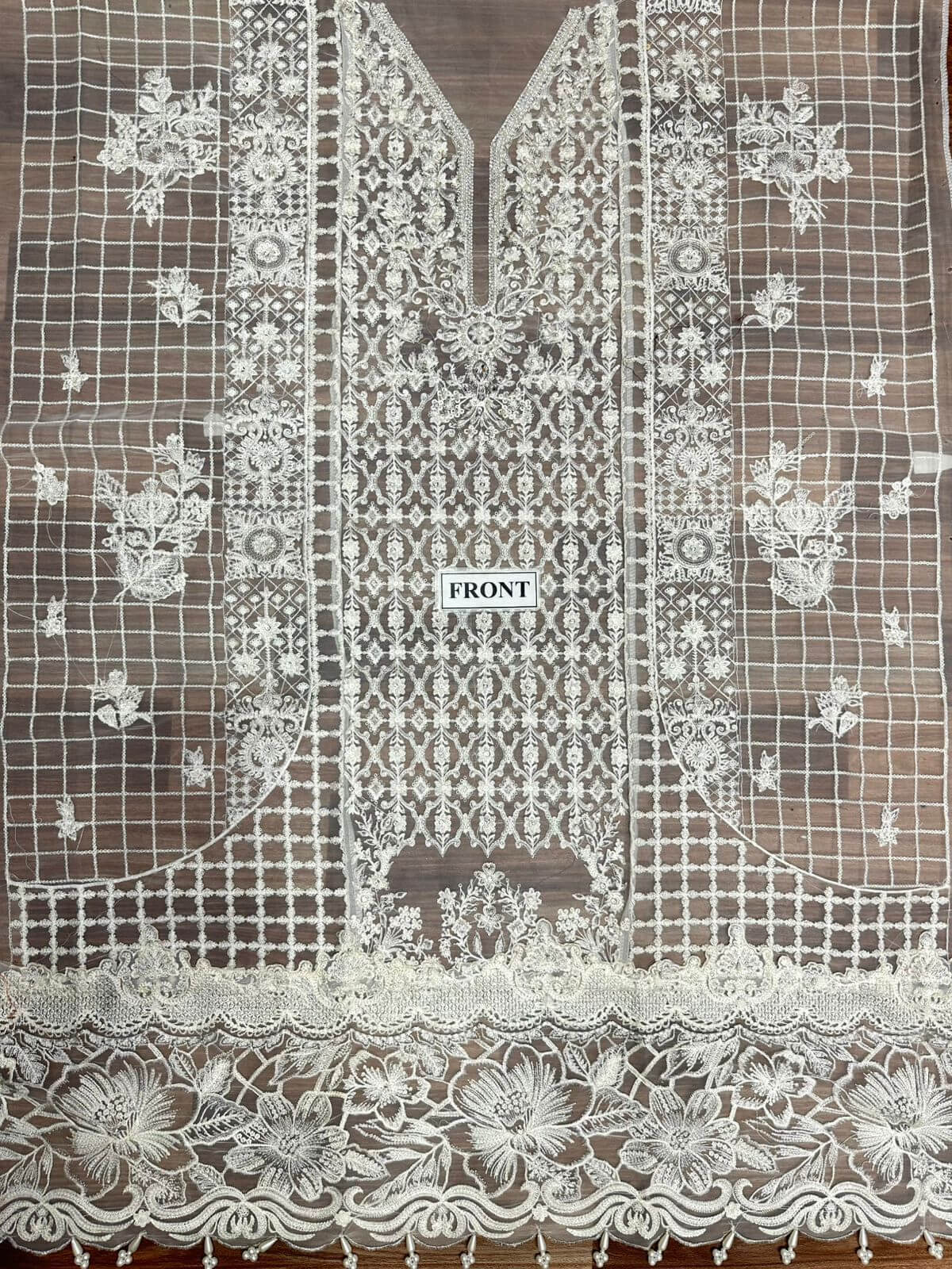 Fully Embroidered Khaadi Net Dupatta With 2 Side Embroidered Lace