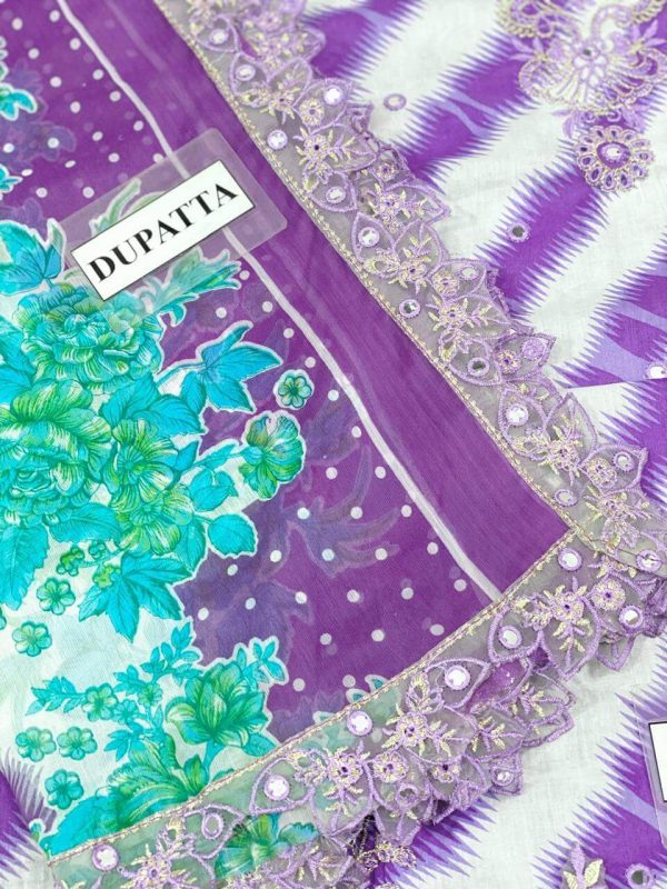 Printed Chiffon Dupatta With 4 Side Embroidered Lace