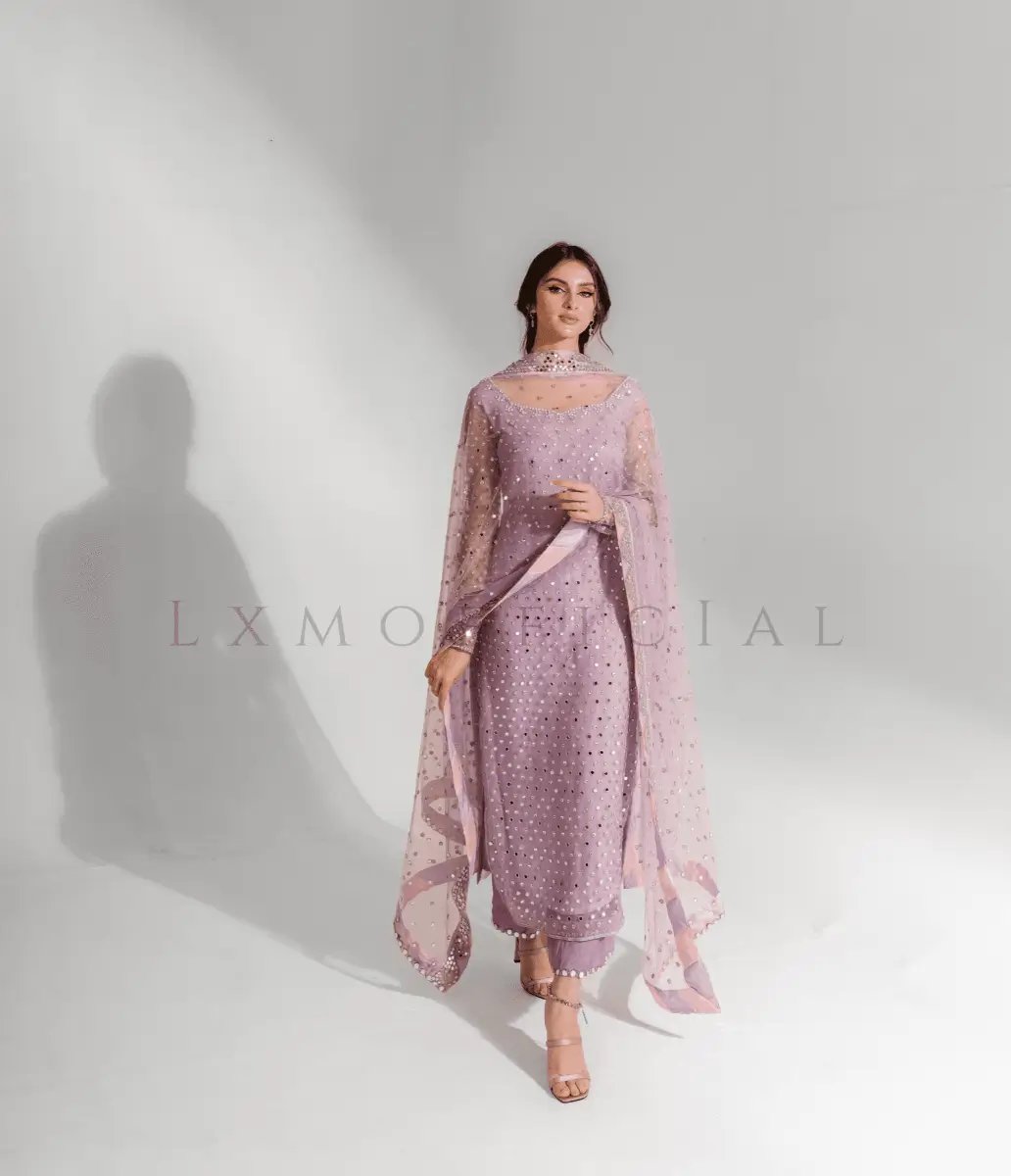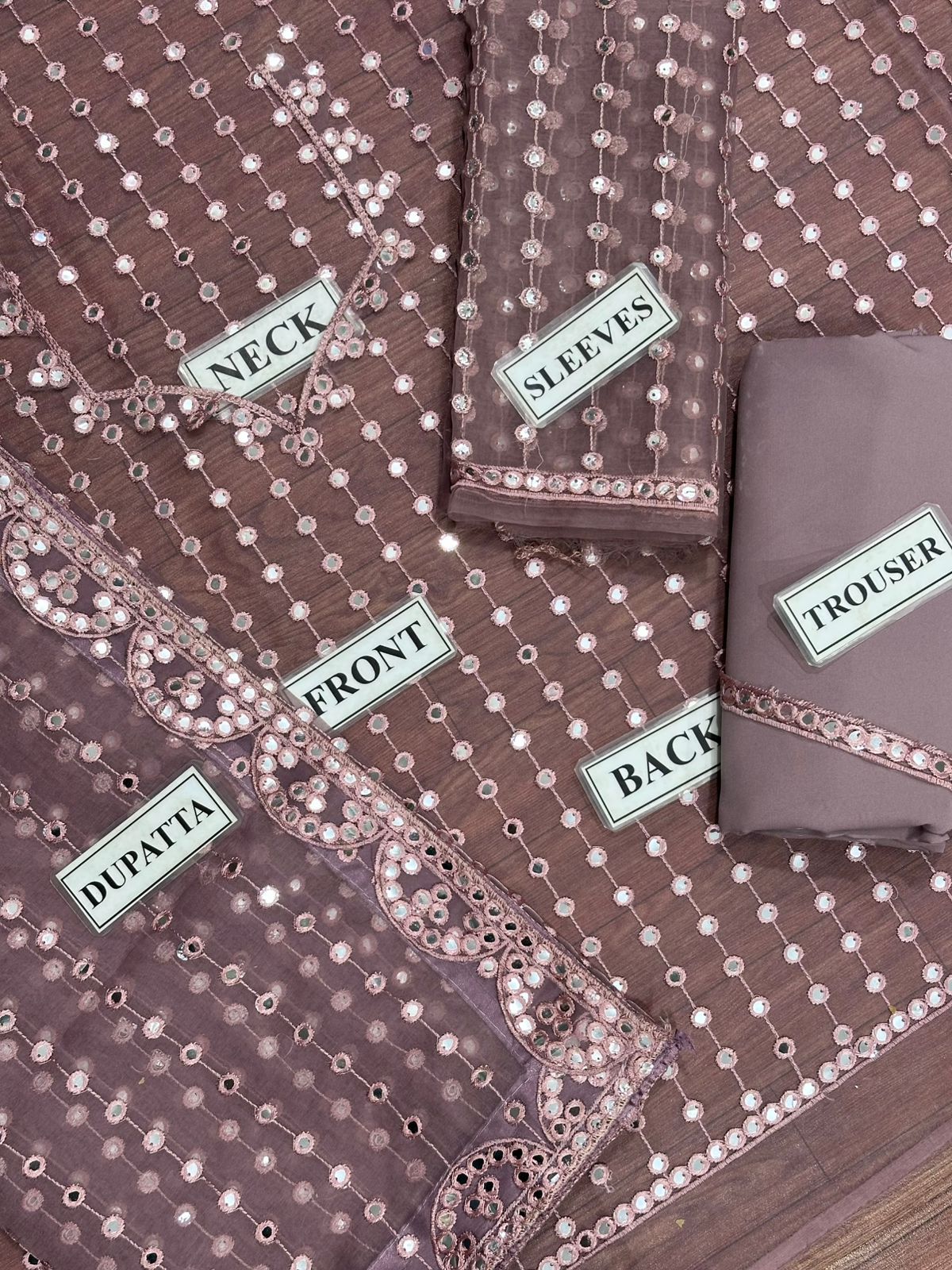Embroidered Front With Sequence With Embroidered Daman Lace