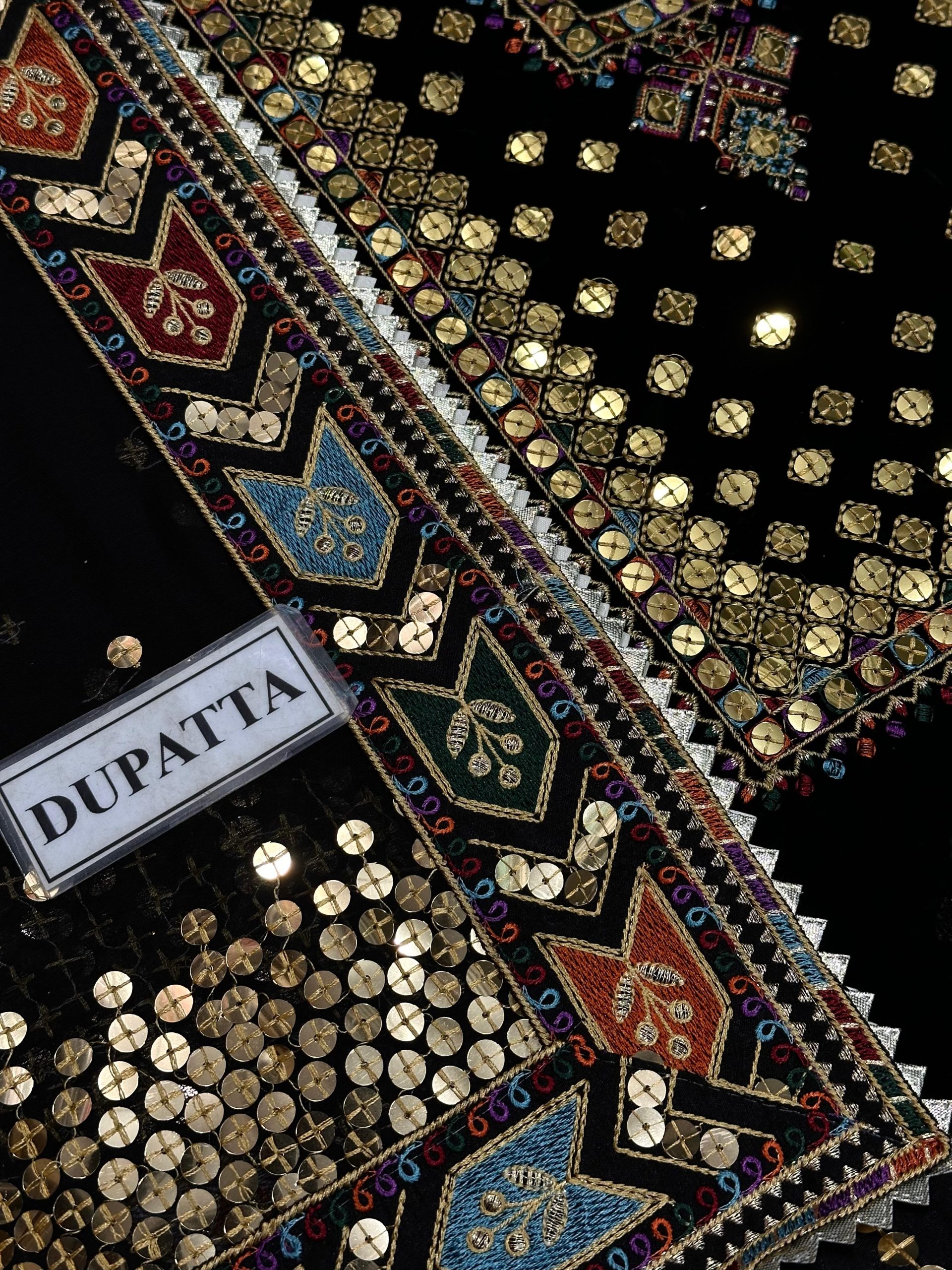 Fully Embroidered Chiffon Dupatta With 4 Side Embroidered Borders