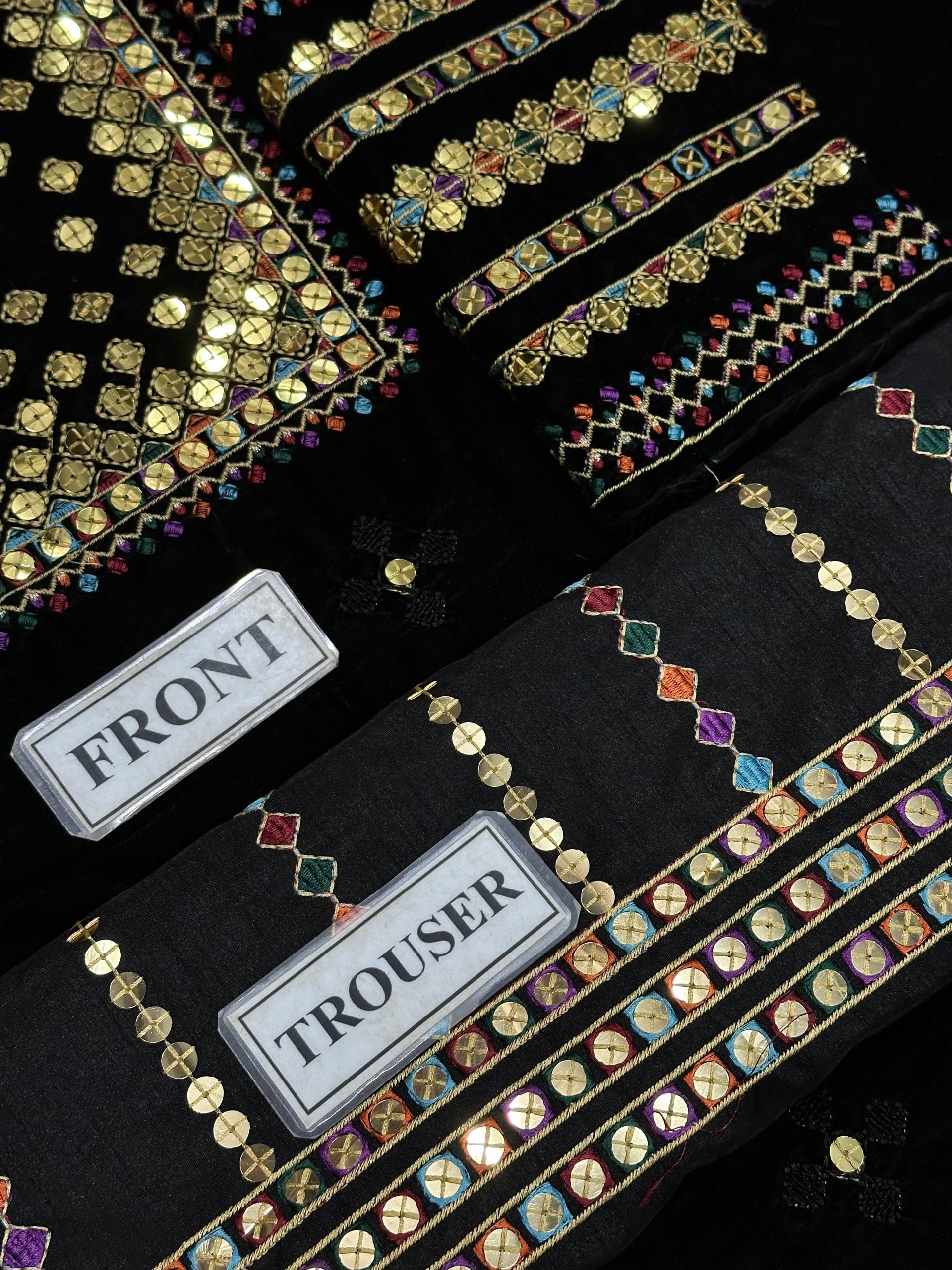 Embroidered Front With Embroidered Daman Border With Sequence Work