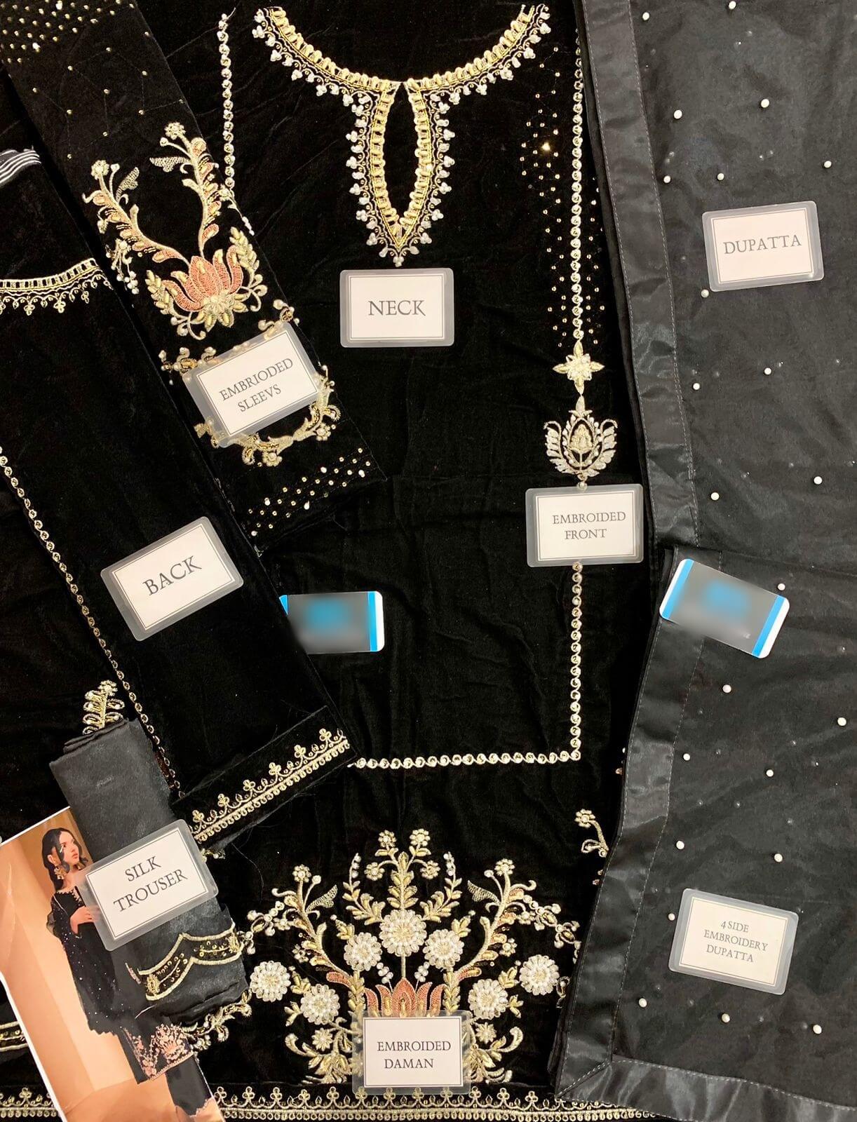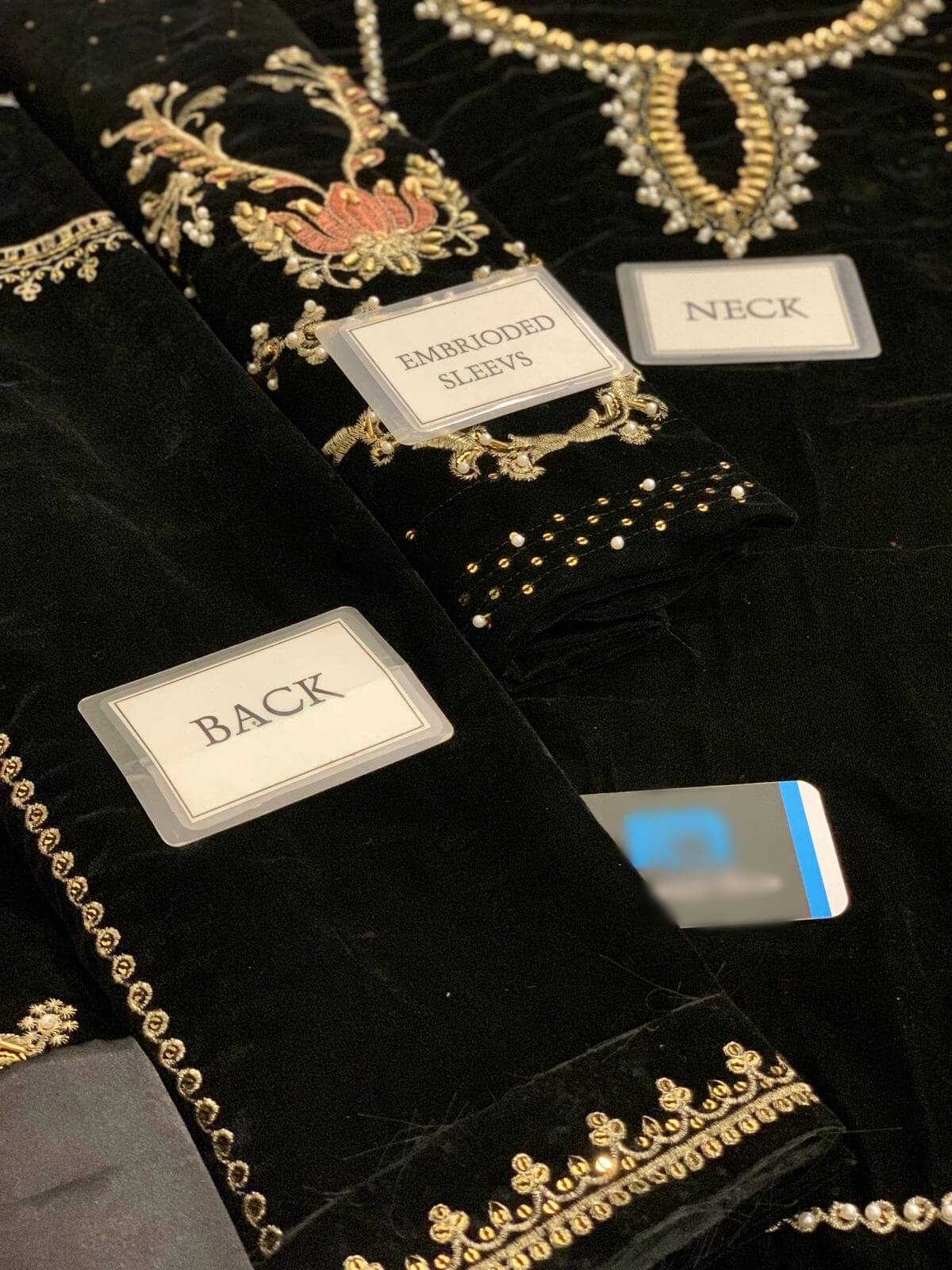 Embroidered Velvet Sleeves With Adda Work