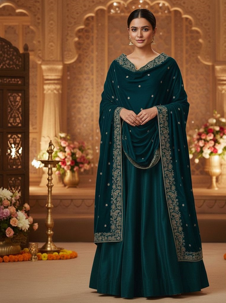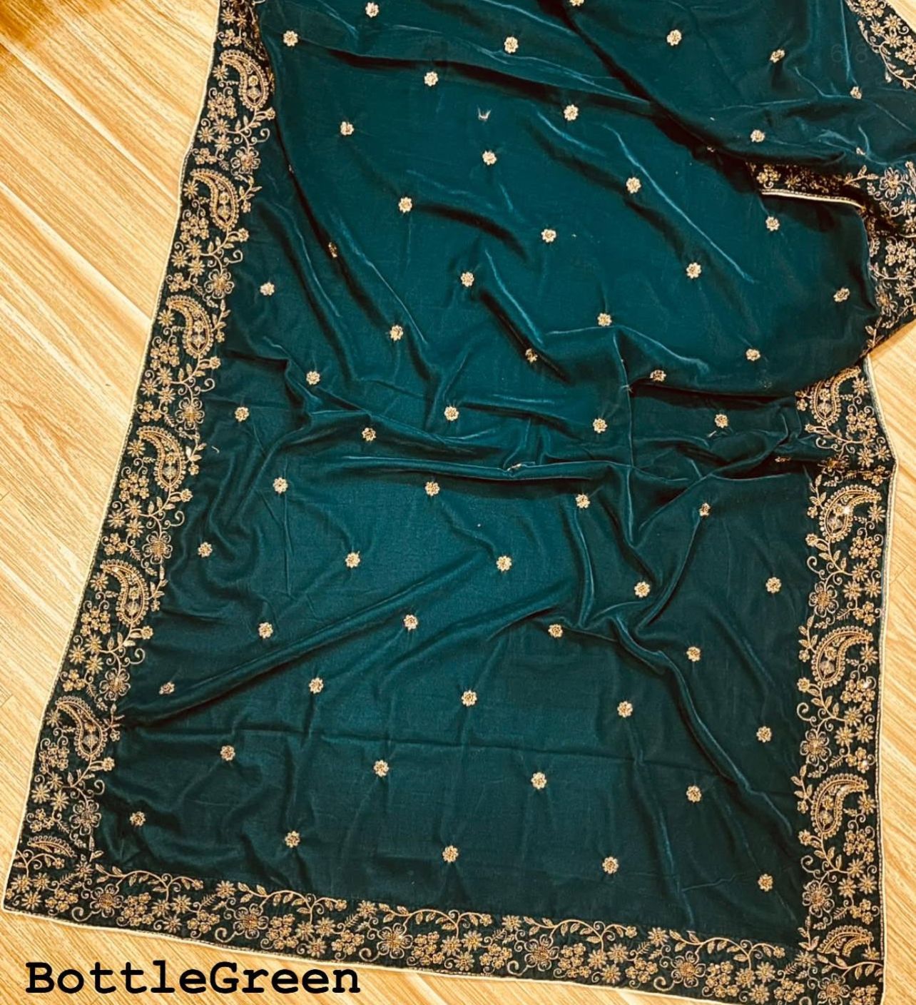 Fully Embroidered Velvet Shawl with Tilla And Black Sitara Work