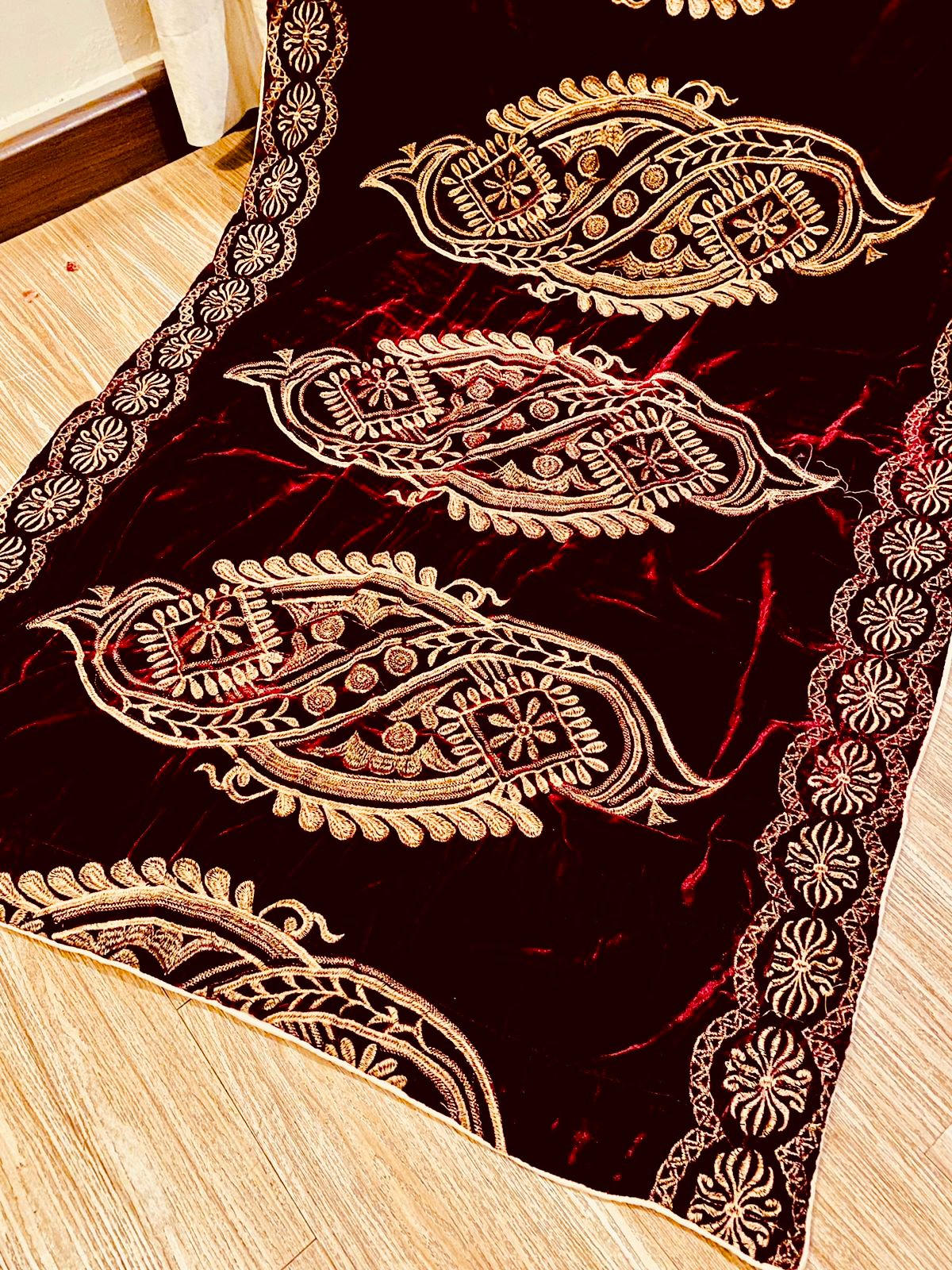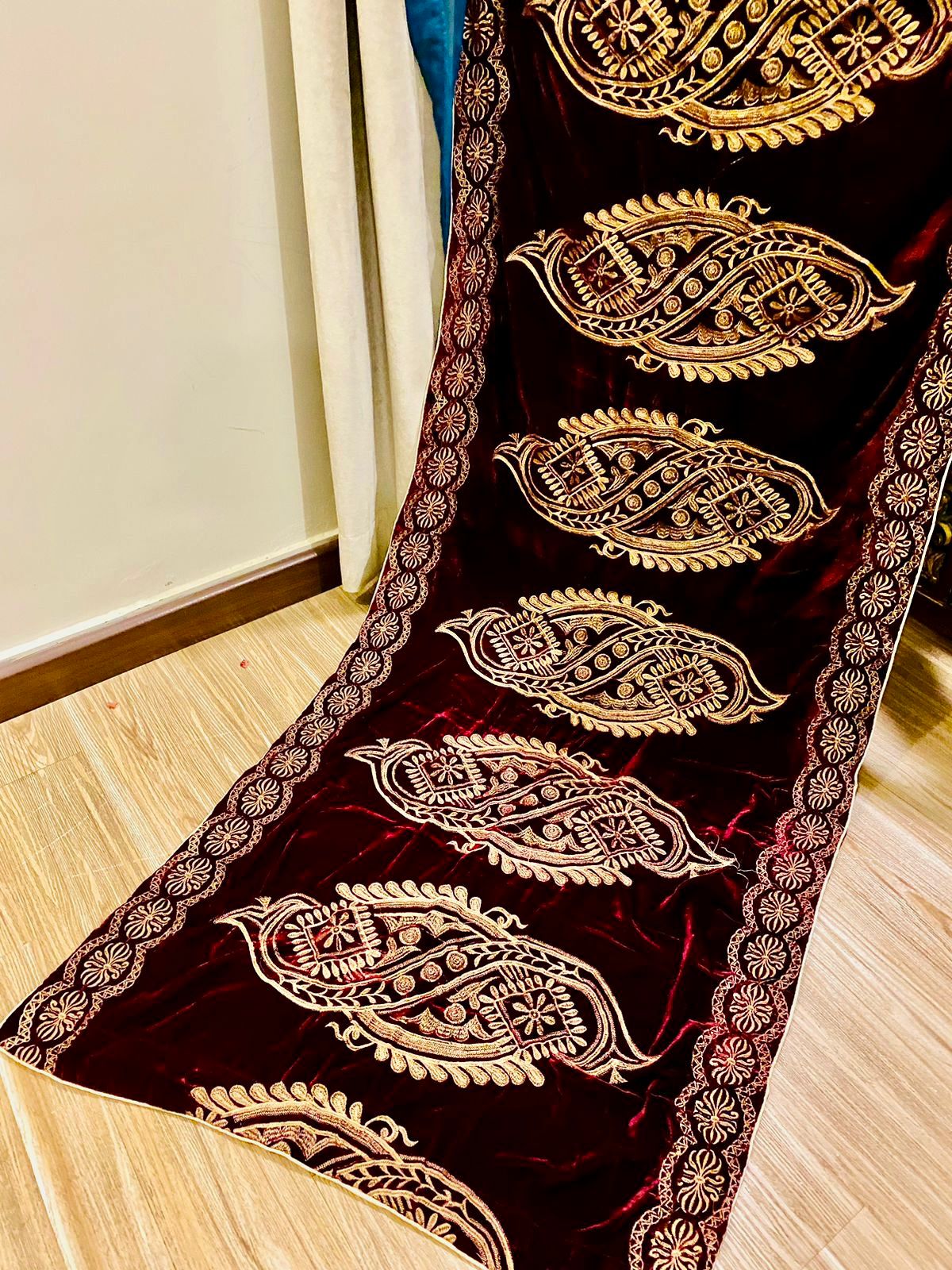 Fully Embroidered Velvet Shawl With 2 Side Borders