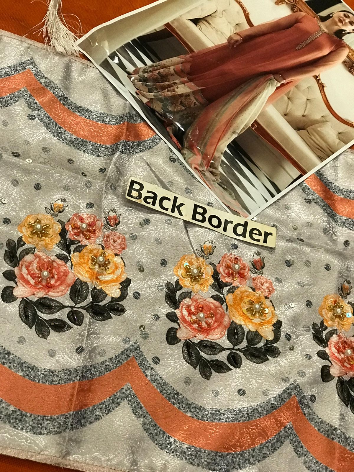 Embroidered Net Front With Embroidered Daman On Jaquard With Handwork