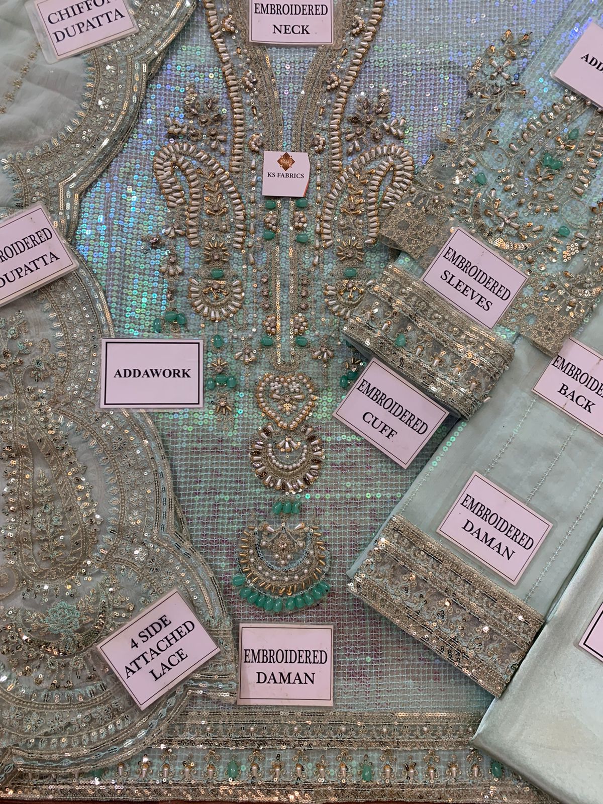 Embroidered Front With Sequence Work With Embroidered Daman Border