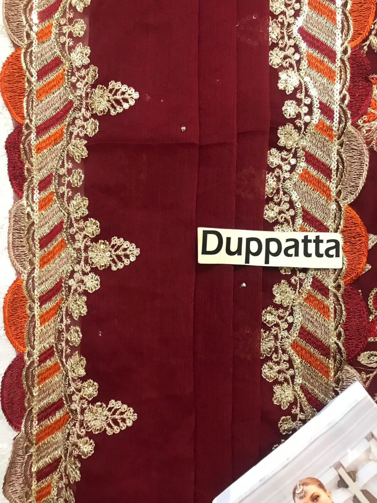 Fully Embroidered Chiffon Dupatta With 4 Side Cutwork Borders