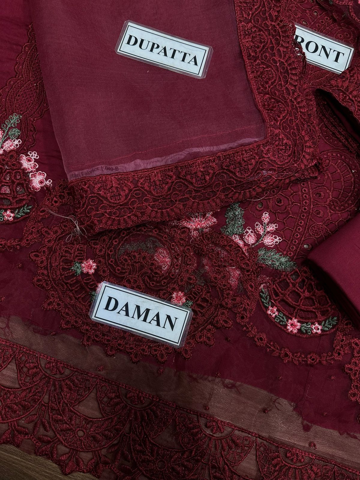 Fully Embroidered Organza Dupatta With 4 Side Embroidered Borders
