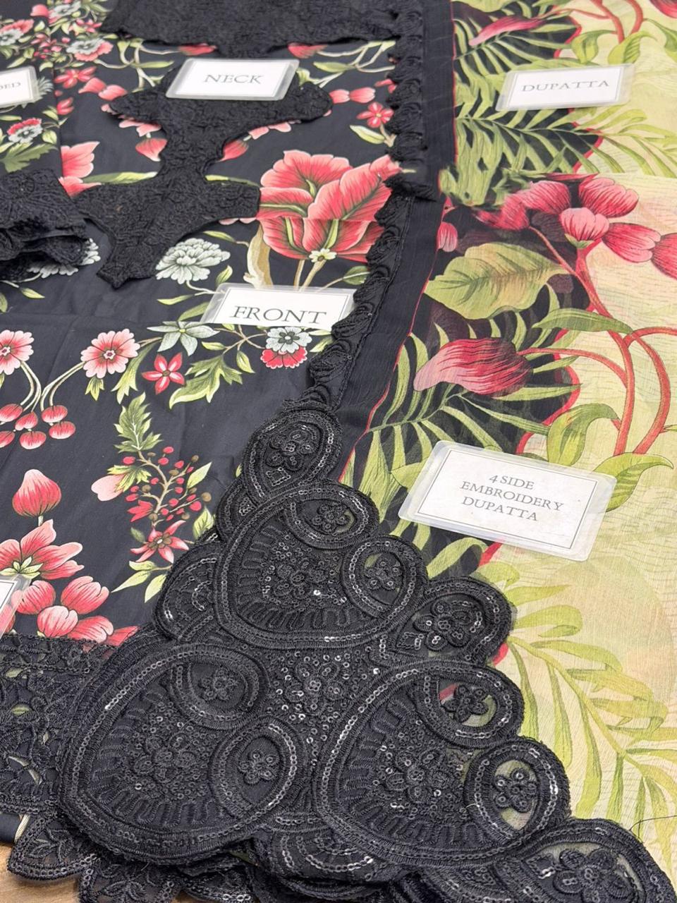 Printed Front With Embroidered Daman Border