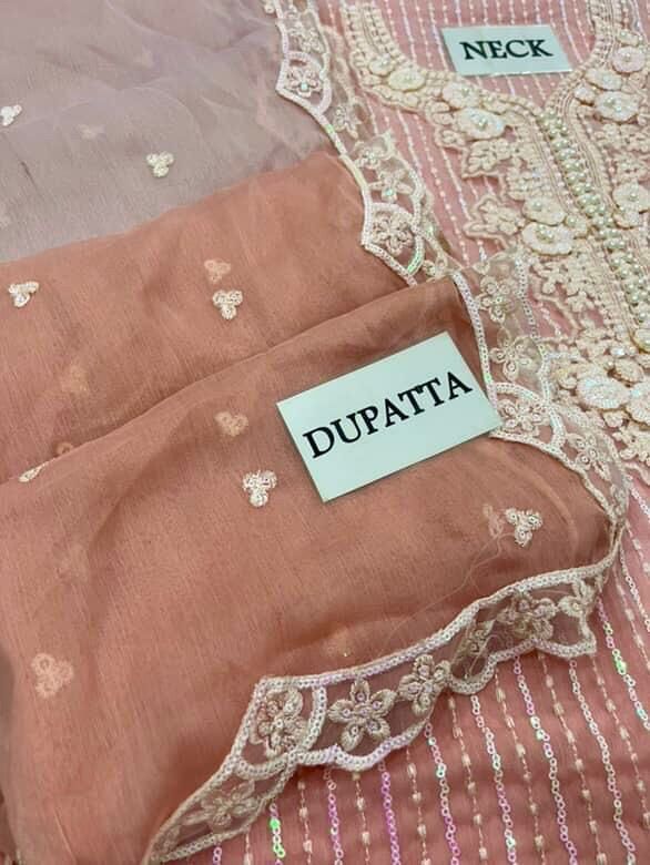 Embroidered Chiffon Dupatta With 4 Side Embroidered Border