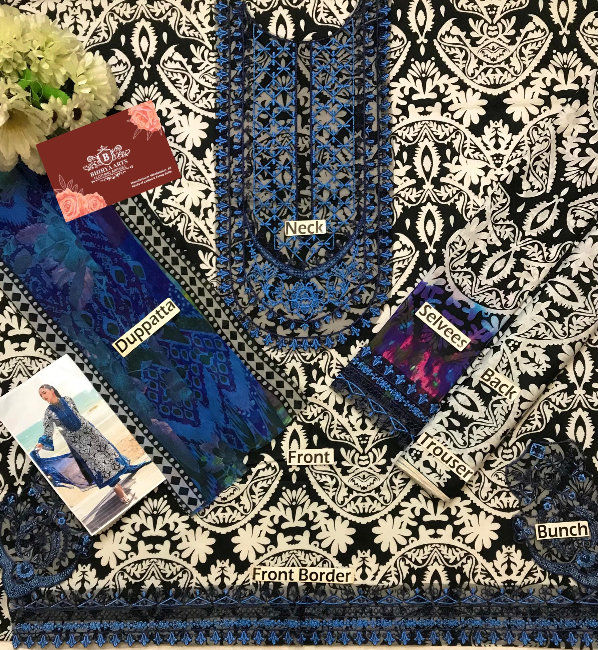 Printed Front With Embroidered Front Border